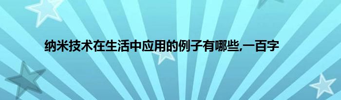大家好,纳米技术在生活中应用的例子有哪些,一百字很多人还不知道,现在让我们一起来看看吧!