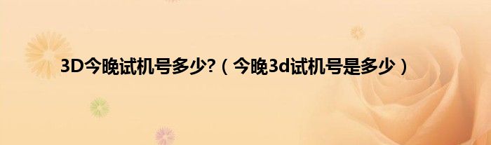 大家好,小问来为大家解答以上问题。3D今晚试机号多少?,今晚3d试机号是多少这个很多人还不知道,现在让我们一起来看看吧!