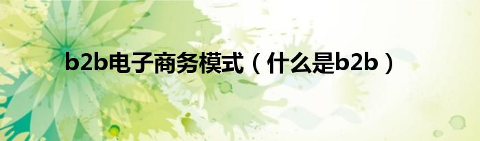 以上就是【b2b电子商务模式,什么是b2b】相关内容。
