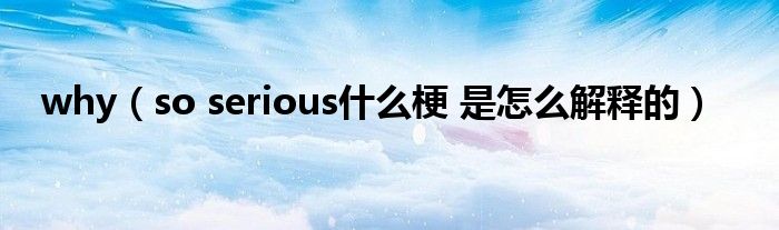 大家好,why,so serious什么梗 是怎么解释的很多人还不知道,现在让我们一起来看看吧!