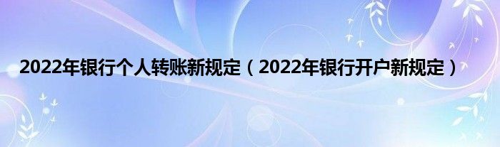 本文,2022年银行个人转账新规定,2022年银行开户新规定到此就分享完毕,希望对大家有所帮助。
