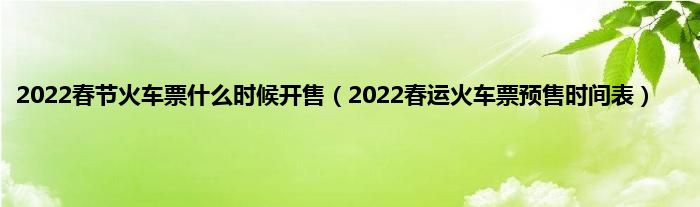 本文,2022春节火车票什么时候开售,2022春运火车票预售时间表到此就分享完毕,希望对大家有所帮助。