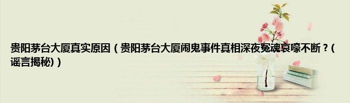 本文,贵阳茅台大厦真实原因,贵阳茅台大厦闹鬼事件真相深夜冤魂哀嚎不断?(谣言揭秘)到此就分享完毕,希望对大家有所帮助。