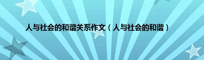 大家好,小问来为大家解答以上问题。人与社会的和谐关系作文,人与社会的和谐这个很多人还不知道,现在让我们一起来看看吧!