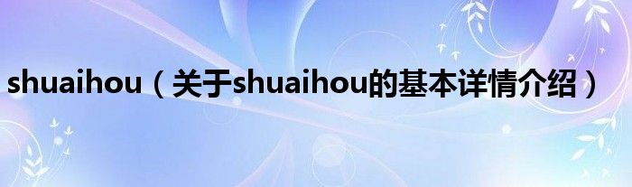 本文关于shuaihou的基本详情介绍就讲解完毕,希望对大家有所帮助。