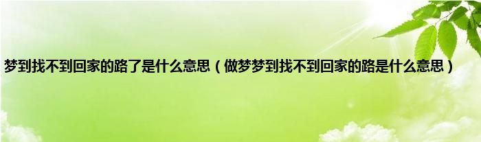 大家好,综合小编来为大家讲解下。梦到找不到回家的路了是什么意思,做梦梦到找不到回家的路是什么意思这个很多人还不知道,现在让我们一起来看看吧!
