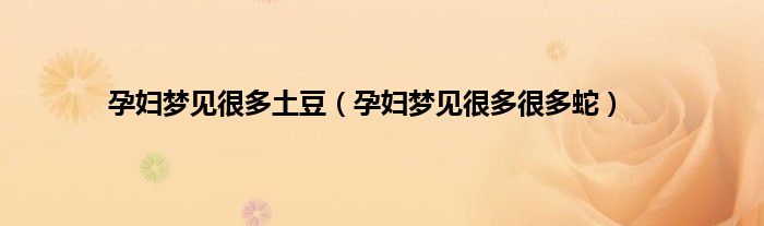 大家好,综合小编来为大家讲解下。孕妇梦见很多土豆,孕妇梦见很多很多蛇这个很多人还不知道,现在让我们一起来看看吧!