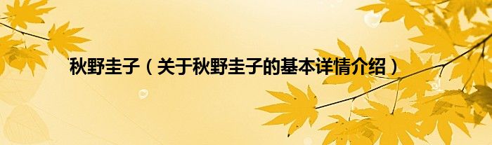本文关于秋野圭子的基本详情介绍就讲解完毕,希望对大家有所帮助。
