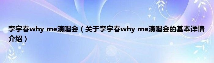 本文关于李宇春why me演唱会的基本详情介绍就讲解完毕,希望对大家有所帮助。