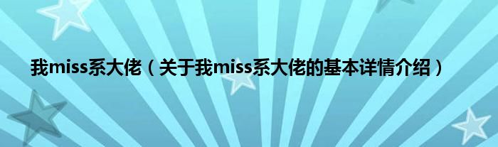 本文关于我miss系大佬的基本详情介绍就讲解完毕,希望对大家有所帮助。