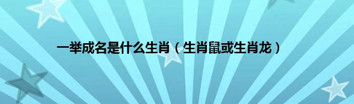 本文一举成名是什么生肖,生肖鼠或生肖龙到此分享完毕,希望对大家有所帮助。