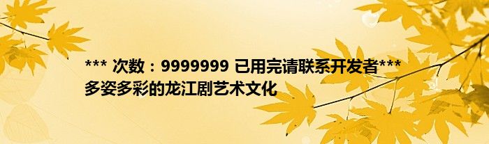 大家好,综合小编来为大家讲解下。*** 次数:9999999 已用完请联系开发者*** 多姿多彩的龙江剧艺术文化这个很多人还不知道,现在让我们一起来看看吧!