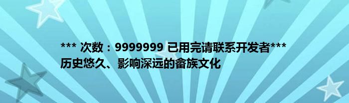 本文*** 次数:9999999 已用完请联系开发者*** 历史悠久、影响深远的畲族文化到此分享完毕,希望对大家有所帮助。