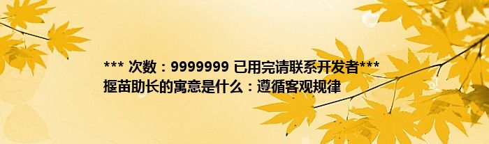 大家好,综合小编来为大家讲解下。*** 次数:9999999 已用完请联系开发者*** 揠苗助长的寓意是什么:遵循客观规律这个很多人还不知道,现在让我们一起来看看吧!
