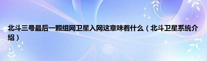 欢迎观看本篇文章,小升来为大家解答以上问题。北斗三号最后一颗组网卫星入网这意味着什么,北斗卫星系统介绍很多人还不知道,现在让我们一起来看看吧!