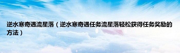 大家好,综合小编来为大家讲解下逆水寒奇遇流星落,逆水寒奇遇任务流星落轻松获得任务奖励的方法这个很多人还不知道,现在让我们一起来看看吧!