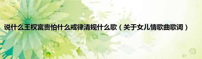 欢迎观看本篇文章,小升来为大家解答以上问题。说什么王权富贵怕什么戒律清规什么歌,关于女儿情歌曲歌词很多人还不知道,现在让我们一起来看看吧!