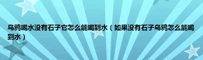 欢迎观看本篇文章,小升来为大家解答以上问题。乌鸦喝水没有石子它怎么能喝到水,如果没有石子乌鸦怎么能喝到水很多人还不知道,现在让我们一起来看看吧!