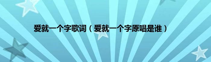 欢迎观看本篇文章,小升来为大家解答以上问题。爱就一个字歌词,爱就一个字原唱是谁很多人还不知道,现在让我们一起来看看吧!