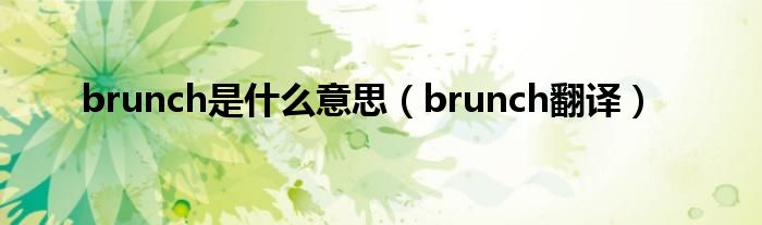 以上就是【brunch是什么意思,brunch翻译】相关内容。