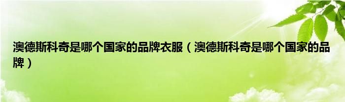 大家好,综合小编来为大家讲解下澳德斯科奇是哪个国家的品牌衣服,澳德斯科奇是哪个国家的品牌这个很多人还不知道,现在让我们一起来看看吧!