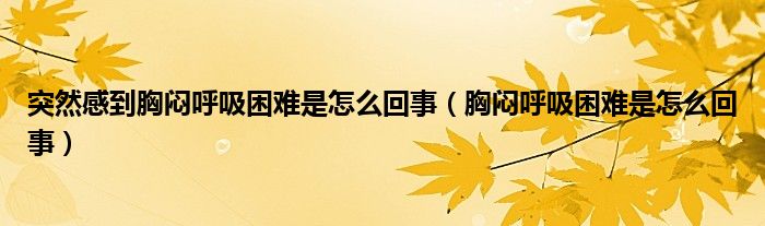 大家好,乐天来为大家解答以下的问题,突然感到胸闷呼吸困难是怎么回事,胸闷呼吸困难是怎么回事很多人还不知道,现在让我们一起来看看吧!