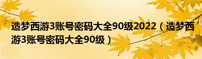 关于造梦西游3账号密码大全90级2022,造梦西游3账号密码大全90级这个很多人还不知道,今天菲菲来为大家解答以上的问题,现在让我们一起来看看吧!