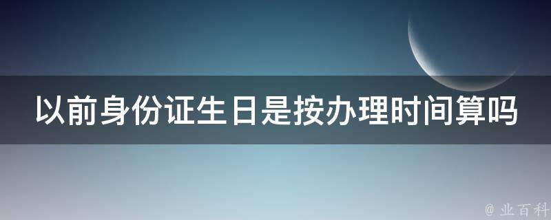 以以前身份证生日不是按办理时间算。身份证上的生日是按照个人的实际出生日期来确定,而不是根据办理身份证的时间来确定。无论何时办理身份证,生日都将根据真实生日填写。身份证的发放日期并不一定与出生年月日相关。