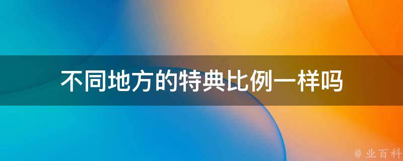 不同地方的特典比例不一样,因为不同地区有不同的经济、市场和文化环境。特典比例会因地区的需求、竞争情况、人口密度以及其他因素而有所不同。商家或品牌会根据当地市场情况和消费者偏好来制定不同的特典政策。例如在某些地方,特典更加慷慨,而在其他地方会有所限制。
