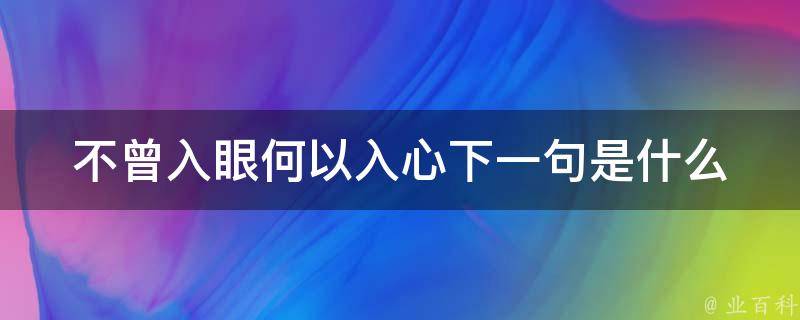 不曾入眼何以入心下一句是生活需要美好,我们为喜欢而选择。这句话的意思是你对一个人未曾谋面,或者第一次相见之后,你对对方并没有好感,也就是常说的眼缘,更别说对他动情动心了,正所谓不入眼所以不入心,要享乐生活,做自己最喜欢的事情。