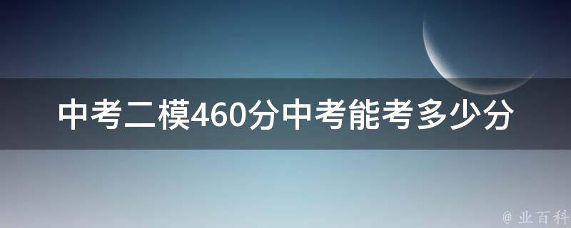 视情况而定。中考二模460分中考能考460-500分左右,但如果超常发挥,则可能考500分以上。二模是中考前检验成绩的最后一次重要的大型模拟考,它的命题人也包含一部分中考的命题人,考试难度和题型都更加接近中考,是导向性极强的一次考核。