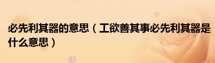 大家好,小联来为大家解答以上的问题。必先利其器的意思,工欲善其事必先利其器是什么意思这个很多人还不知道,现在让我们一起来看看吧!