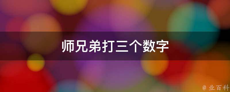 师兄弟打三个数字是6、5、7。从师兄弟的笔画去猜测数字,师字6笔画、兄字5笔画、弟字7笔画,因此师兄弟打三个数字是6、5、7。师兄弟是师兄与师弟的合称,指有同门关系的人。拜同一个人为师,那么先入师门的为师兄,后入师门的为师弟。