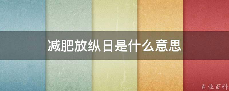 减肥放纵日是指减肥一段时间后的短假期,可以是半天,也可以是一天,但不要太长。在这一天,你可以吃你想吃的东西,但是一定要适量。这样的减肥放纵日不仅不会影响减肥效果,还可以放松减肥期间的压力,对减肥的持续进行和减肥期间的心理健康有着巨大的帮助。