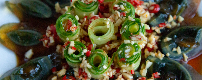 皮蛋热量高,每100克可食用部分含有171大卡热量。皮蛋属于蛋类的一种,含有大量的蛋白质和脂肪,蛋黄含有大量的胆固醇,减肥期间最好少吃。皮蛋口味独特,可以增进食欲,刺激消化器官,可以缓解胃酸过多的病症。