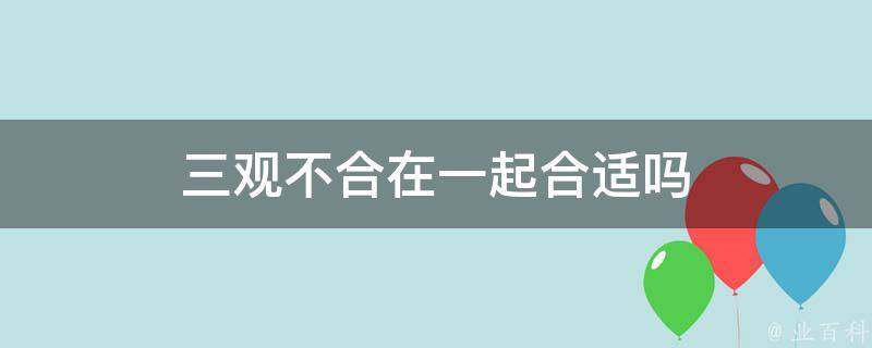 三观不合在一起不合适。因为三观不合,两个人的沟通会非常累,容易引发争吵和战争。双方的三观不同,对待问题的态度也不同,很难心平气和地说话。三观不合的人在一起生活,容易无话可说,让人觉得特别累,没有幸福感。虽然也有一部分三观不合的人会走到一起,但是能走到最后的还是极少数。