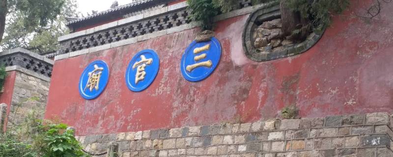 三官庙供奉的是三官大帝,三官大帝指的是天官、地官、水官。中国上古就有祭天、祭地、祭水的礼仪。三官庙位于泰山中麓斗母宫之上。由山门、钟鼓楼、东西配殿、大殿组成。悬于半空,山门台阶共有53级,俗称五十三参。