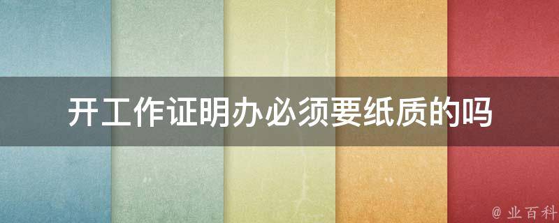 开工作证明办必须要纸质的。注意开工作证明要注意必须的格式。开工作证明必须要盖鲜章,也就是说,收入证明复印是无效的。盖的章必须是单位的公章,而且必须是圆章。工作证明的用途:申请签证使用、申请信用卡/贷款、就业考试、资格考试、职称评定、申请交通补贴。