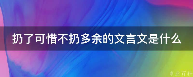 扔了可惜不扔多余的文言文是丢之可惜,弃之不舍。与之相关的句子有食之无味,弃之可惜。食之无味,弃之可惜的意思是吃起来没有什么味道,扔掉又有点可惜。比喻事情进行下去没多大必要,就此放手又舍不得,也形容进退两难、犹豫不决、无可奈何。