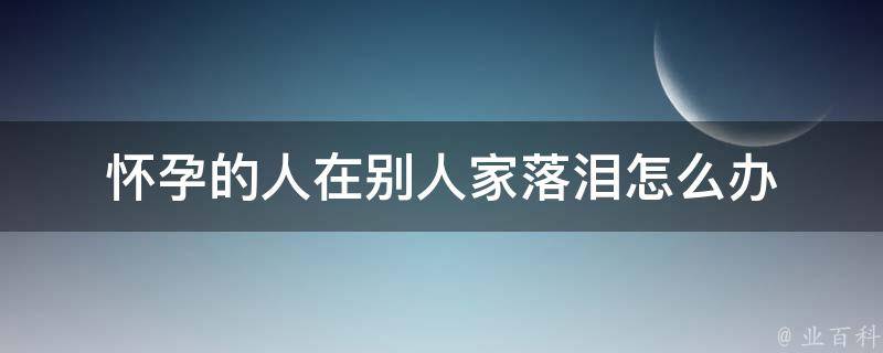 怀孕的人在别人家落泪,可以转移一下注意力,平时可以看一些喜剧电影、喜剧书籍,尽量让自己保持愉悦的情绪,要学会自我调整心态。孕妇情绪也会受到家庭环境的影响,此时家人要给予更多的关怀和帮助。孕妇长期情绪压抑会影响到胎儿的性格,宝宝出生后容易喜欢哭闹,适应能力也会比较差,孕期一定要保持良好的心态。