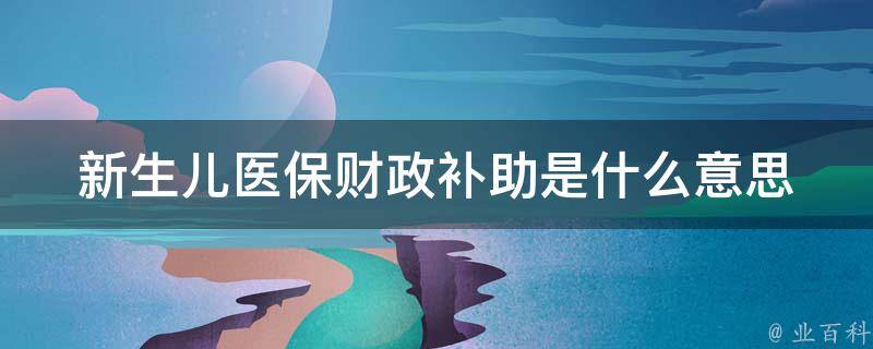 新生儿医保财政补助是指国家对新生儿医疗保险费用的补贴。新生儿医保财政补助根据每年医疗费用的不同档次,有不同的财政补助标准。在参保后,新生儿全年享受参保财政补助,只缴纳个人应承担的费用。
