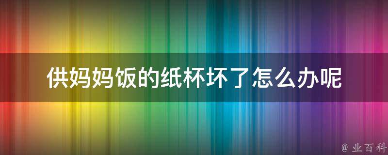 供妈妈饭的纸杯坏了换一个即可。纸杯的存放环境是影响保质期的重要因素,如果纸杯存放在潮湿的环境中,容易受潮变形,导致保质期缩短。相反,如果纸杯存放在干燥通风的环境中,可以延长其使用寿命。