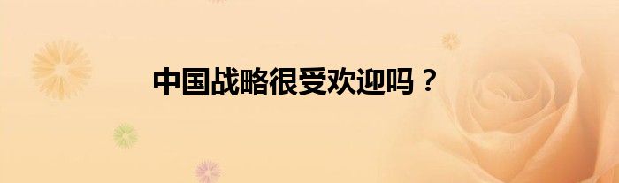 大家好,小联来为大家解答以上的问题。中国战略很受欢迎吗?这个很多人还不知道,现在让我们一起来看看吧!