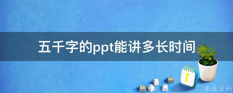 五千字的ppt能讲30分钟左右,具体看演讲人的语速和风格,一般播音员一分钟可以讲300-400字。一般而言时长不易过长也不易过短,一张PPT最好最短10分钟最长20分钟之内比较合适,简短简洁的好处是让人意犹未尽。