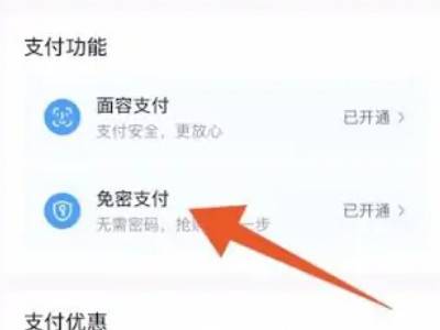 4、在抖音支付页面中,找到支付功能下方的免密支付并点击。