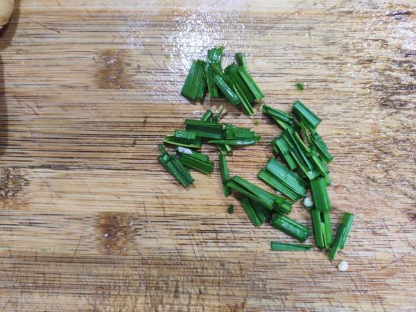 4、大蒜叶切小段。