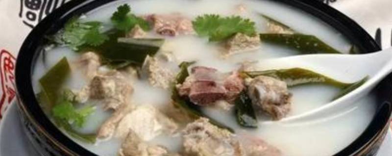 海带排骨汤, 是浙江一带传统名菜,属于浙菜系。此汤菜肉烂脱骨,海带滑烂。此菜品汤鲜味美,海带含有丰富的钙,可防人体缺钙,还有降血压的功效,是一道非常易做又美味的家常益精补血汤。
