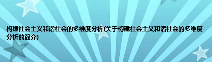 构建社会主义和谐社会的多维度分析(关于构建社会主义和谐社会的多维度分析的简介)