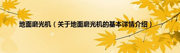 本文关于地面磨光机的基本详情介绍就讲解完毕,希望对大家有所帮助。