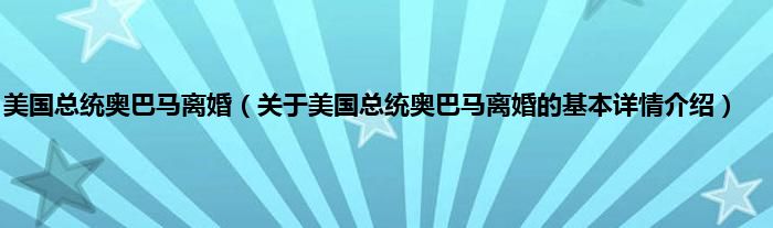 本文关于美国总统奥巴马离婚的基本详情介绍就讲解完毕,希望对大家有所帮助。